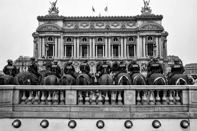 There was teargas in the air this Saturday of November 2018 in Paris. That day the atmosphere was very tense because of a popular demonstration. The Mounted Police was present to secure the famous Opera Garnier. The contrast between the architecture of the building and the horses caught my eye. I po...