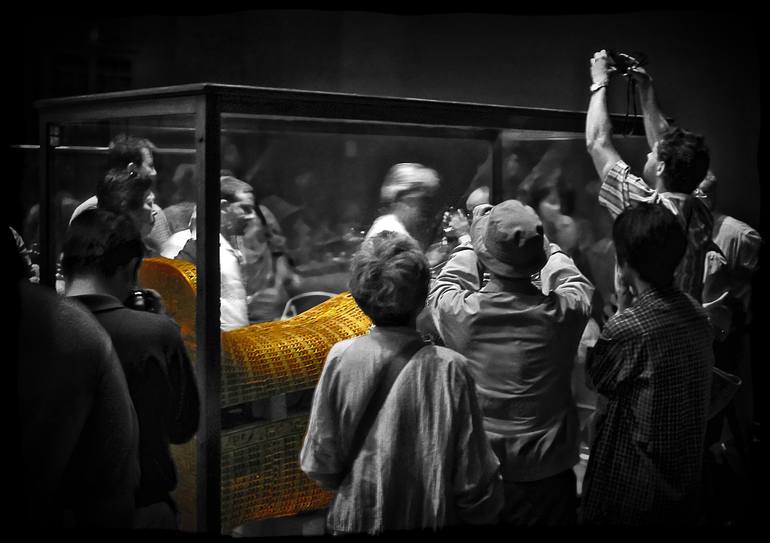 Fineprintphoto: Tourists take pictures around the sarcophagus of pharaoTutankhamun at the Egyptian museum in Cairo, Egypt. The image begins as a real photograph, expertly transformed through digital techniques. It's then printed as a C-type print using lightjet laser exposure on Photo Paper. The r...