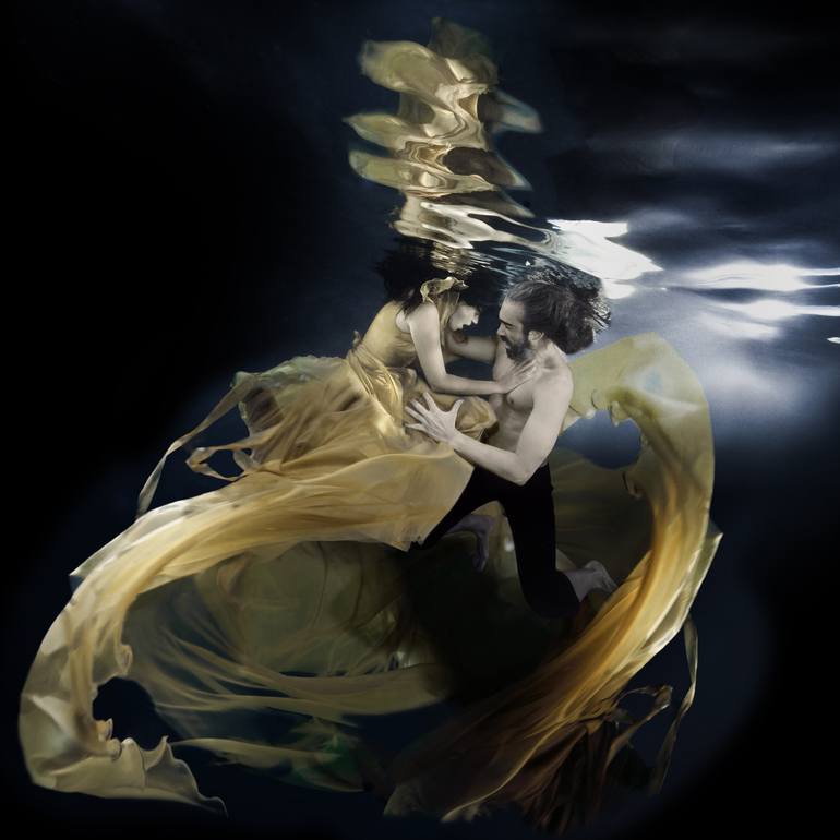 Underwater photograph of Thetis & Adamastor. She is the matriarch of all sea nymphs and the embodiment of law. He represents storm and Tempest. Photograph created during the fine art production of Breathless Echoes in collaboration with Espaco Exibicionista Gallery in Lisbon, Portugal. Limited Editi...