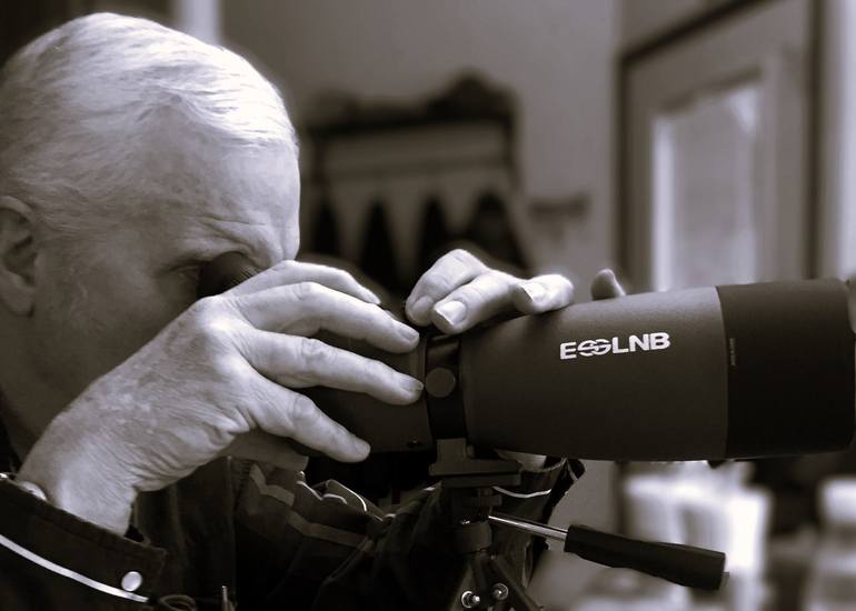 "Through The Looking Glass" is a black and white photograph capturing an older man gazing through a scope. This image explores themes of reflection and perception, inviting viewers to consider the journeys and experiences that shape our understanding of the world. The contrast between light and shad...