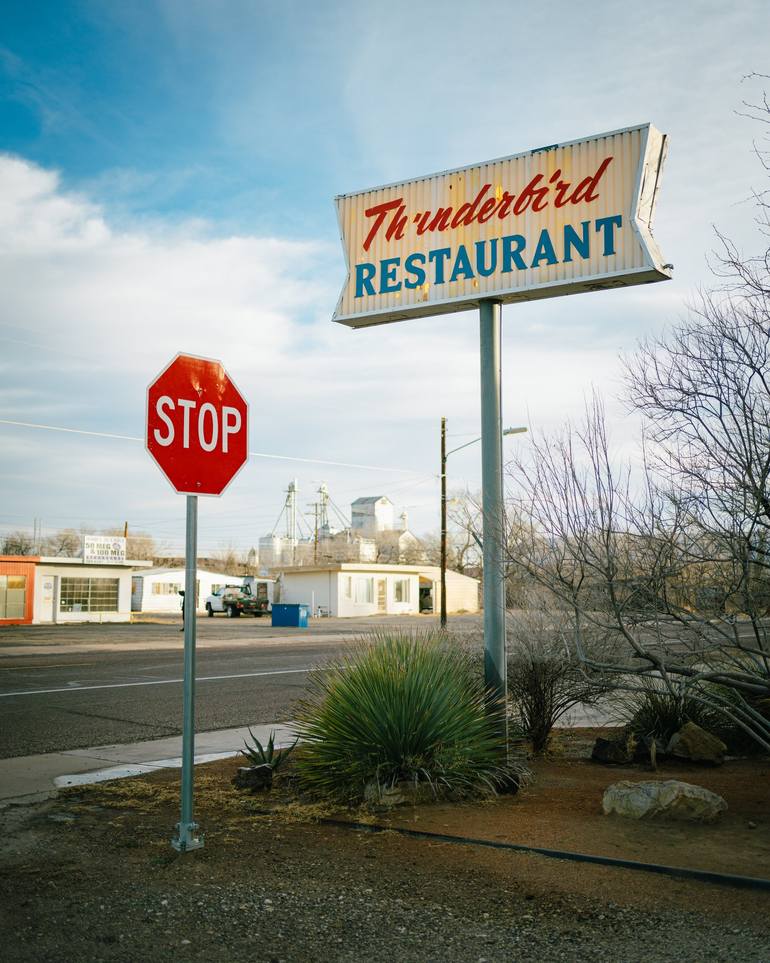 Thunderbird Restaurant vintage sign, Marfa, Texas - digital photographic print by travel photographer Jon Bilous