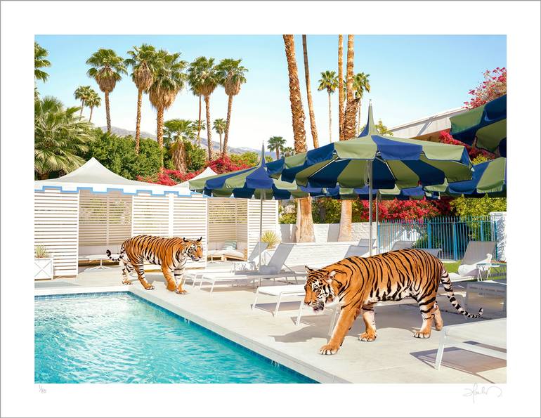 Get carried away with this joyful view of two tigers sunbathing at The Parker, Palm Springs. This historic desert hotel has attracted Hollywood royalty for decades. This giclée print is from a limited edition of 80, the artwork comes hand-signed and numbered. Printed on Hahnemühle Photo Rag Satin. ...