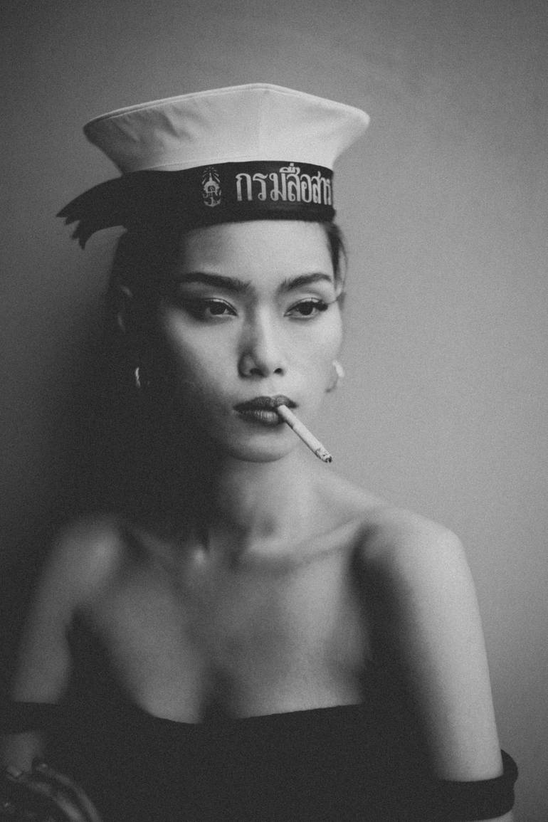 Black and white portrait capturing the essence of youth and beauty with a Thai navy sailor hat and a lit cigarette, exuding a timeless and rebellious charm. Edition of 15 + 2 Artist Proofs. Signed and numbered by the artist. Printed on archival fine art paper, 30×45 cm. Certificate of Authenticity ...