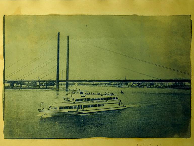Cyanotype yellow tinted. Cyanotype - an old photographic process with ironsalt (Potassium ferricyanide and Ferric ammonium citrate green). The print is exposed under a 1:1 negative in the sun or in ultraviolett light. The cyanotype is on strong paper or drawing carton in the Format 30 x 42 cm (DIN A...