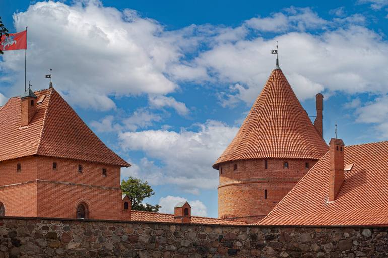 Detail of Trakai Castle in Lithuania. Detail of the tower and entrance with the flag on a summer day. The original artwork is reproduced in only one copy, so only this one is signed on the back by the author with written confirmation that it is the original in only one copy.
