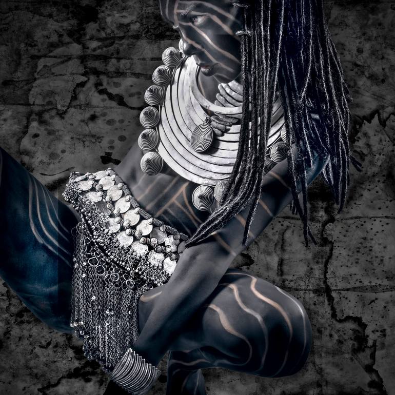 A Tribal Wild Explosion Primal, uncurbed sensuality. Body-painted models celebrate the human form. Through dramatic chiaroscuro lighting and bold compositional choices, these artworks capture wanton unbridled vitality—an oscillation between fierce and tranquil—strength alongside moments of introspe...