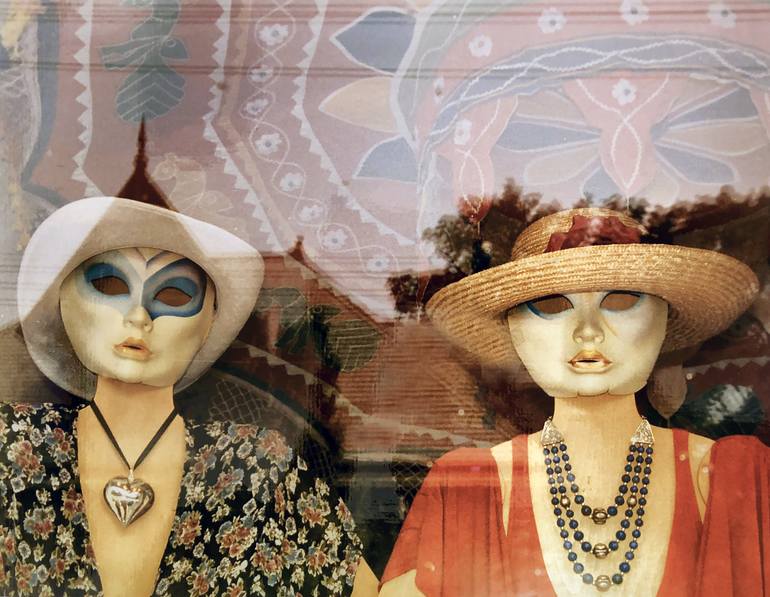 This photograph was taken in Athens,Greece looking into a window display.The print was made in a wet darkroom using a 45A color head..It is mounted on 16 by 20 white mounting board.