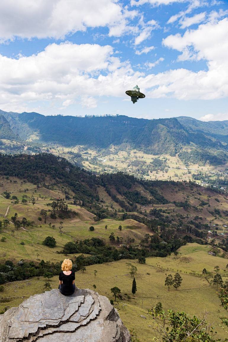 Last time I was in Colombia I saw this nice UFO hovering over the landscape from the Parque Natural Chicaque - not far away from Bogota. Okay, I didn’t see it in real but in my head. So I painted it in the picture to make it complete. If you don’t like it in the frame, you can stretch you arm, lift ...