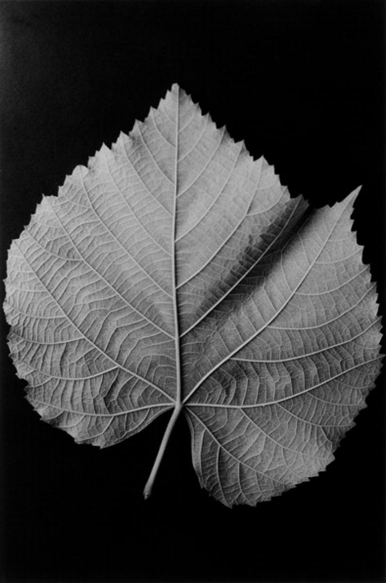 Black and white analogue photograph showing the texture of an heart-shaped leaf. This image is intended to reflect the pure shape of Nature, its geometrical beauty and simplicity.