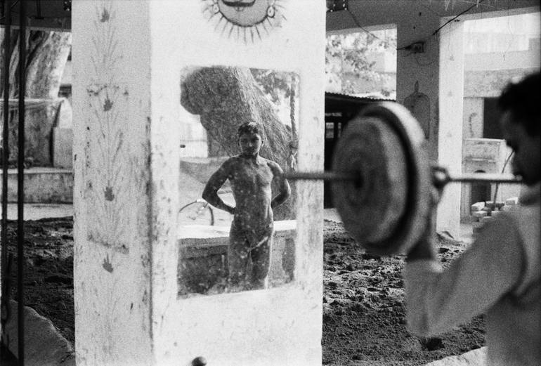From the series "Indian Wrestling Students" Fiber Base BW Photograph Edition 1 of 7 prints Artist Statement - COWBOYS AND INDIANS introduces us to two insular, male-dominated communities. The first is a group of “jackaroos” (the term for young cowboys in Australia), in a remote area of northern...