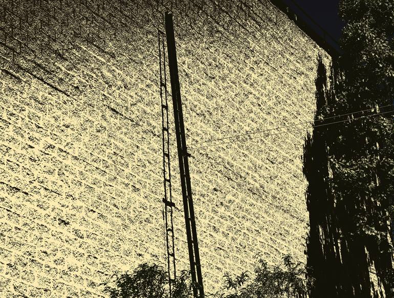 An abstract capture of both ladder and shadow high upon a wall in Brooklyn's Williamsburg neighborhood with a minimalist approach to detail.