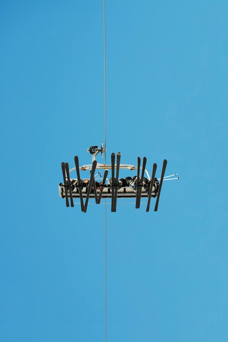 It might take a second for the viewer to recognize a skilift from behind. Laying on my back there in the snow was frequently commented and laughed at from the people riding the lift. A calming view from a different angle of a situation that many have experienced. Taken in Sweden.