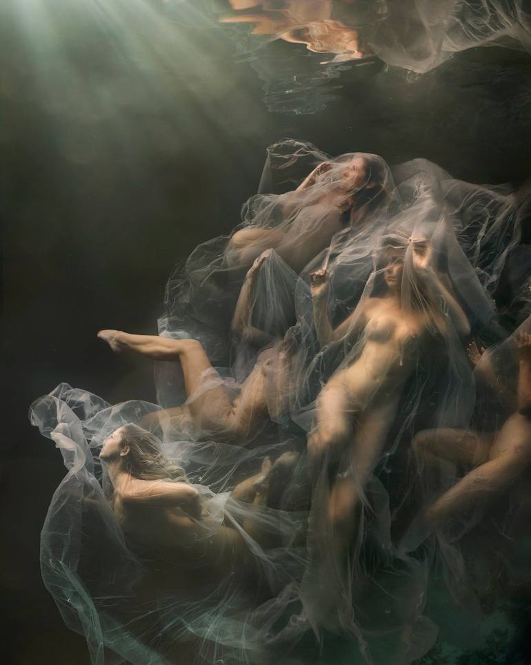 ‘Veil’ 2024 from Lexi Laine This image is made from five photographs taken underwater in the Mediterranean Sea. Meticulously collaged together, I wanted to create a composition that is reminiscent of ceiling frescos made in the Baroque period of painting. The women seen in this artwork are swimming...