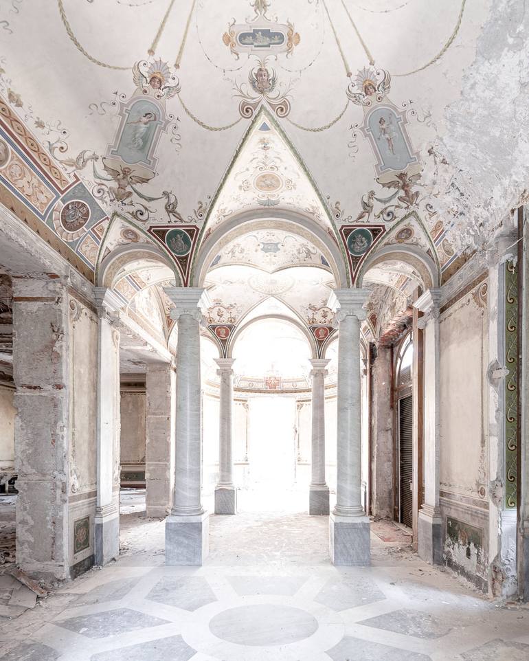 This art work is part of the "Equilibrium" Collection. The astonishing entry hall of an abandoned mansion in Italy. The photograph was taken in 2015 and reworked in 2024. Limited edition of 3. Signed and numbered with a certificate of authentication. Printed on high quality fine art paper Hahne...