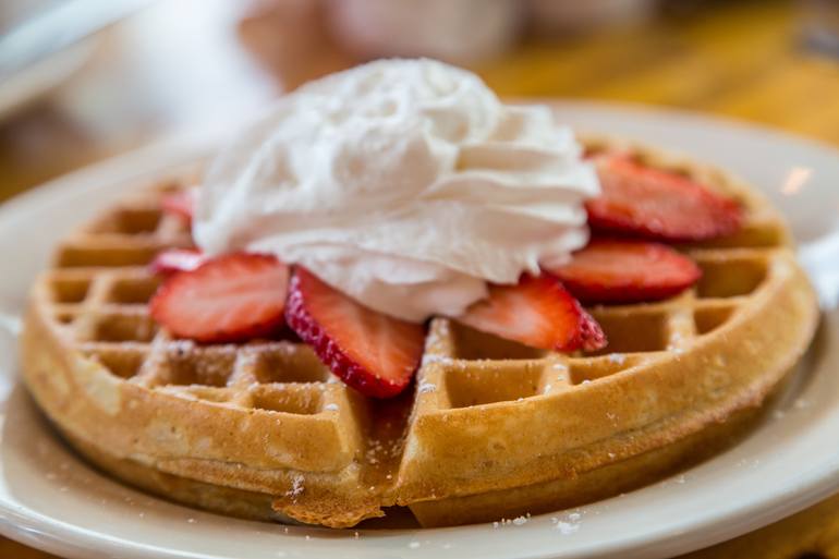 My wife always orders extra whipped cream when she gets waffles or pancakes. It worked out well for me creating this particular image