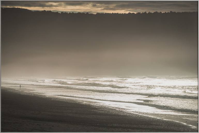 I took this amazing picture on New Zealand sea side. It was a sunset and wind raised up sea dust creating fog. Mounted works are ready for your interior environment Paper HP Matte Litho-realistic on Aluminum panel DIBOND, frame Safe box - thin matte silver aluminum frame. HP Matte Litho-realistic ...