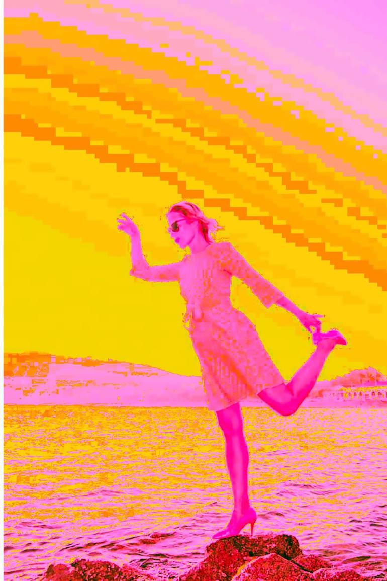 Traveling In Florida inspired by a lady by the beach doing Yoga. Color of pink and yellow inspired by the bright skyline.