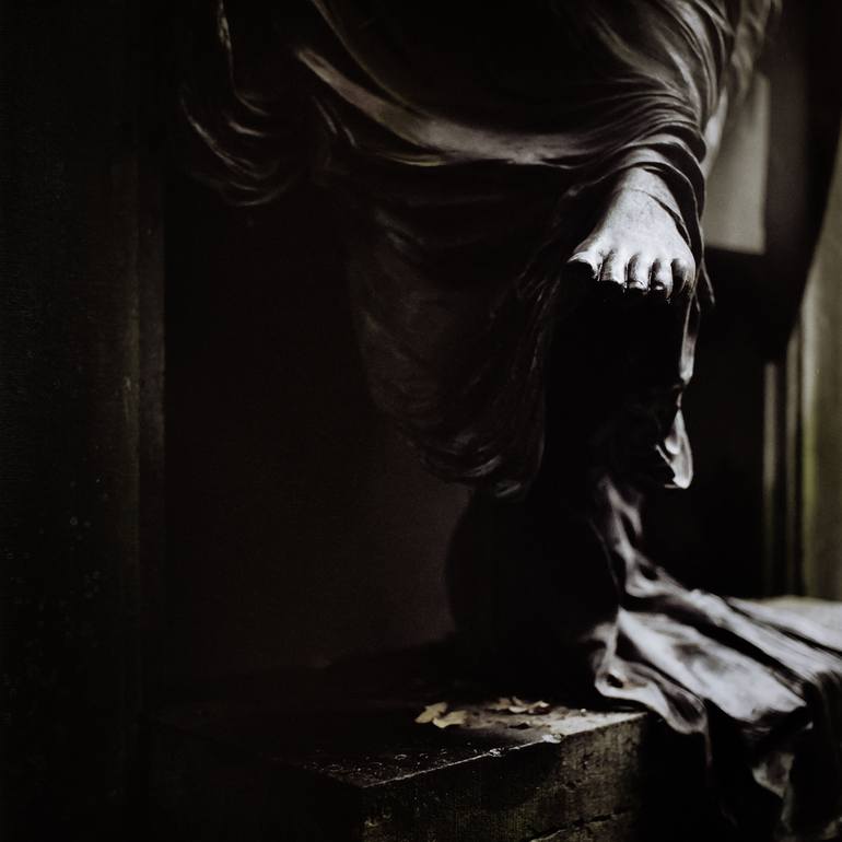 Fine Art Inkjet (Giclée) Print on Gallery Quality Etch/Rag Paper with Certificate of Authenticity. This photograph was made using a medium-format camera (the "classic" Hasselblad 500C/M) and Fujichrome negative film. It shows a detail of a life-size bronze statue of an angel sitting on a tomb in a ...
