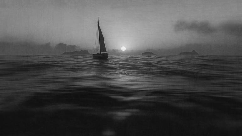 Alone sailboat drifts toward the horizon as the sun, suspended like a question, hovers on the edge of disappearance. Where the Sun Waits is a meditation on solitude and transcendence — a Jungian symbol of the journey inward, toward self-revelation. The vastness of the water reflects not despair, but...