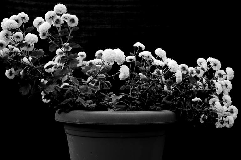 Archival ink print on Epson digital canvas. Its winter season in Delhi and also time to see the white chrysanthemum blossom. I got these new type of chrysanthemums planted called buttoned Chrysanthemums and they look beautiful in a bunch.