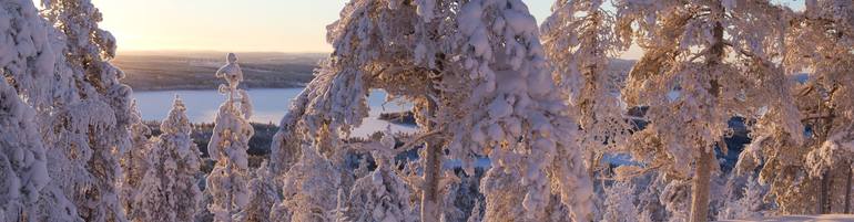 View over a frozen RĂ¥ne River, from a small mountain just beneath the actual arctic circle.