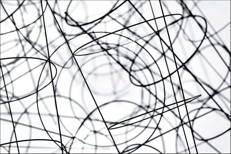 Measuring 50" x 33.3", Wired is a symphony of circular and linear patterns, a tapestry that feels both structured and spontaneous. The overlapping lines form intricate shapes that draw the viewer in, conveying an abstract and, at times, almost kinetic and musical, a jazz like energy. It's a visual d...