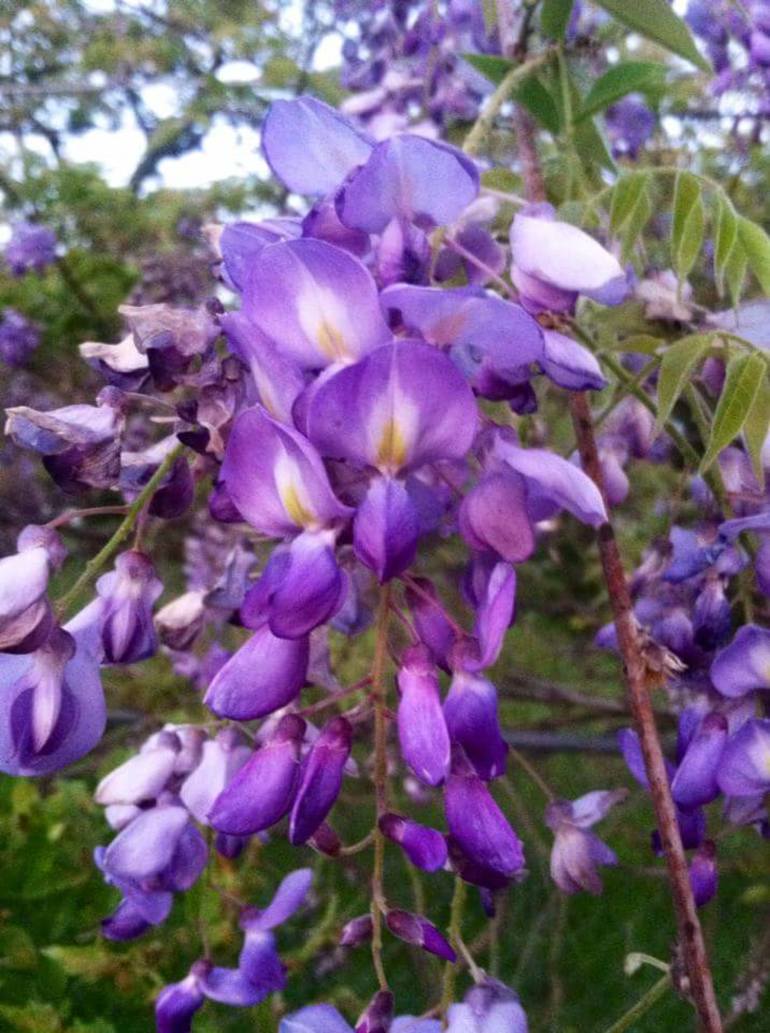 We have a Wisteria growing along our back fence. When it's in bloom it's hypnotic in its beauty. When it recently bloomed for an extended period of time it was the most beautiful to date. I took several photos of it with my iPhone 4 when I was back there tending my garden. This is one of those photo...