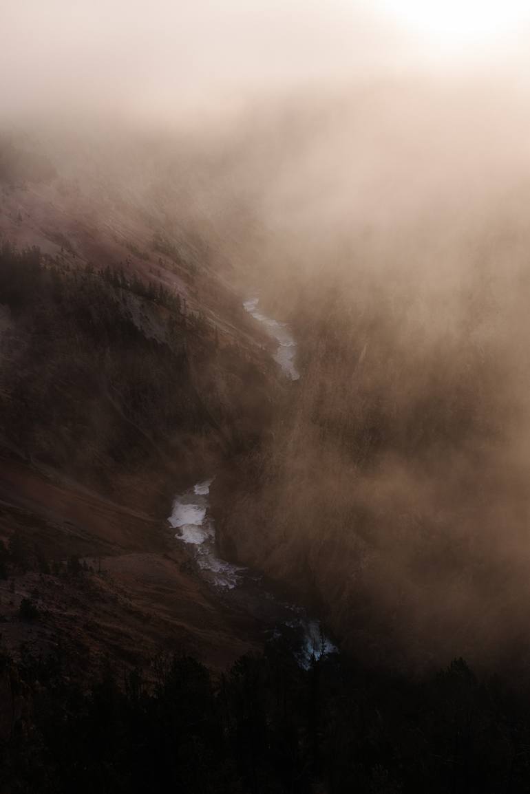 Yellowstone Mist was photographed just after sunrise, stood above the clouds, during a 13,000 mile exploration of North America and is part of an ongoing series of cinematic photographs entitled Elsewhere. Elsewhere is a cinematic photographic exploration of anywhere-but-home. Limited Edition, 1 o...