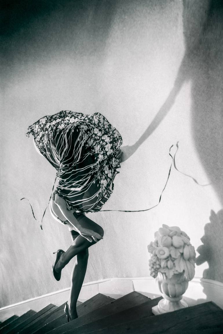 dancing on the house stairs art photographic fujicolor crystal paper print under plexiglass floating in a wooden white frame unique artwork one-of-a-kind