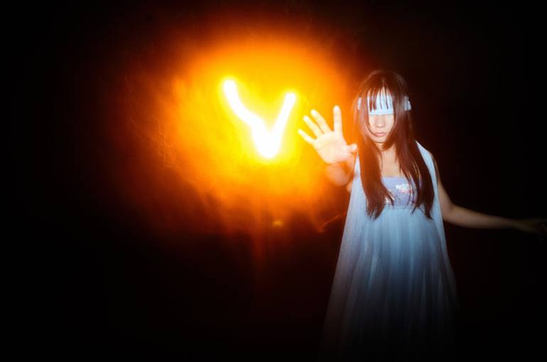 This image deconstructs the illusion of success, portraying a young woman blinded by ambition. Her eyes covered by a velvet blindfold, she blindly chases after a distant "V" light sign, a symbol of victory. The image evokes a sense of unease, highlighting the dangers of prioritizing external validat...