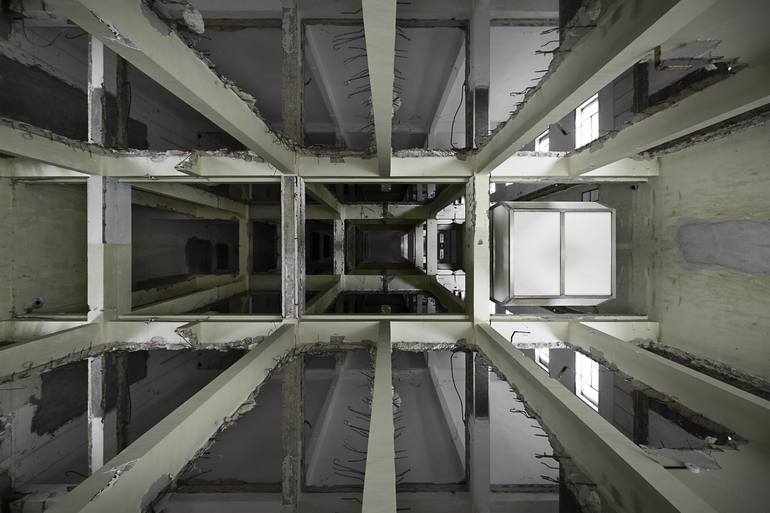 This one is a part of re-constructed images from abandoned places. That work is called Architextures. It is currently being exhibited in Spanish Pavilion at Venecia Architecture Bienale 2016. State of the art Chromalux dye sublimation printing on 1,4 m aluminium sheet which is later framed floating...