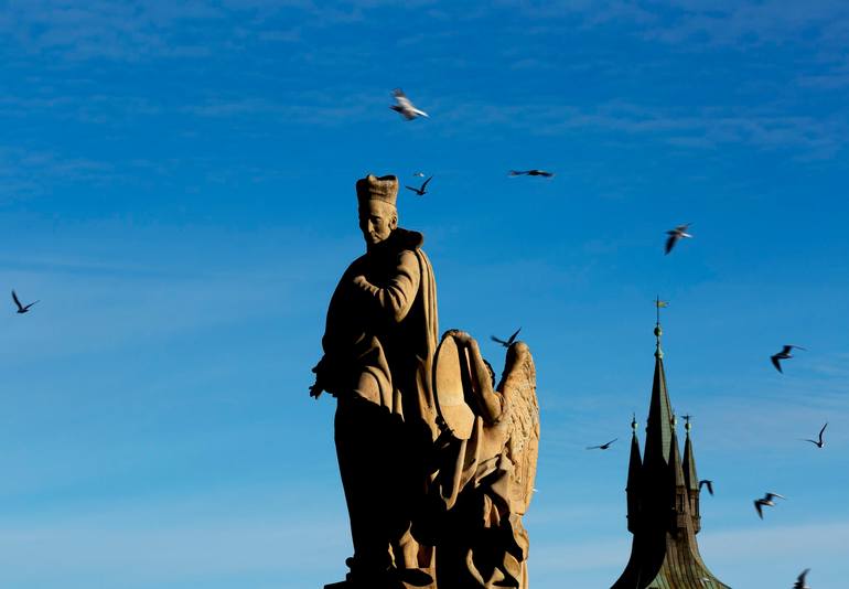 Shot in color detail on the facade of this historic building representing some character, animal or flower. Set at Prague, Czech Repúblic, Europe