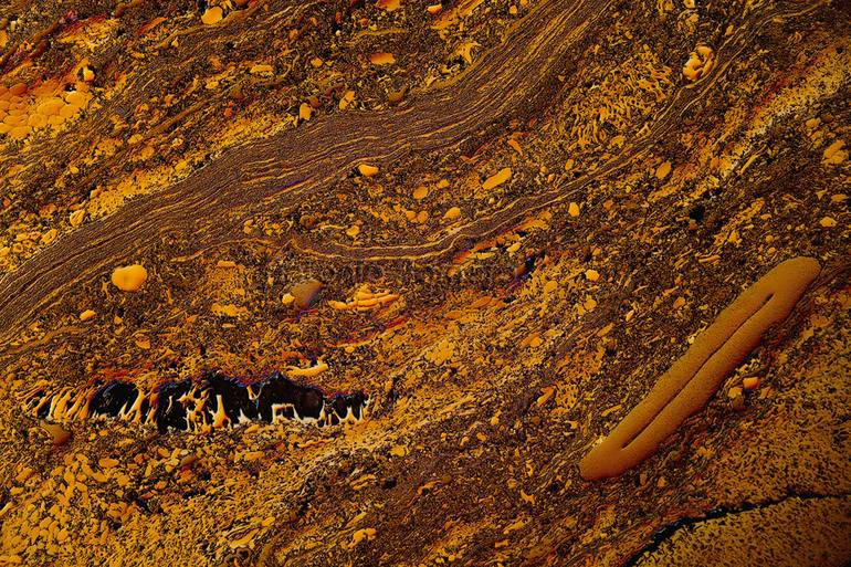I define my author projects, more visual than discursive, like "Quiet and pleasant strolls through the microcosm of human: microspaces of a parallel universe of emotional energy." Like processes that take place in our creative mind of logic gates with switches of colors. The creative mind: the completely "irrational" and so exclusive trait of the homo sapiens. - In my teenage years, I observed to the microscope a thin slice of rock that contained an astounding amount of microfossils of single-cell animals, petrified hundreds of millions of years ago, but still telling about their morphology, their habitat, their staggering biodiversity, and their role in our evolutionary history. Their narration took the form of microlandscapes of endless mass graves full of delicate recumbent beings. I felt the need to retain that moment in my memory capturing it with a photograph. My pictures want be an unedited vision across suggestive and baffling parallel-universe, unknown but very close: tiny corners of an infinite reality. I wish to share these snapshots with other naked eyes, viewers diving into them and promenading through them leisurely: in a symbiosis of aesthetic experience, cognitive process and also a reflection on the theme of those artworks, speaking to us about our technoscience present which is writing our future. As a medium for my artistic production, I use the digital photography (fine art pigment prints) with the help of a microscope. For more information please check out my official website: