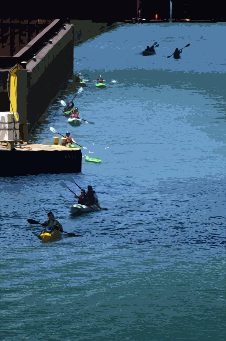 kayakers paddling down the Chicago river