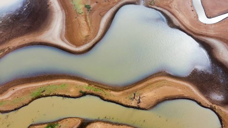 When the waters of a large lake dry up, there are little ponds left