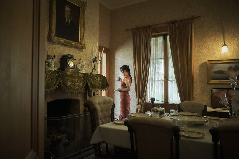 This painting celebrates the resilience of cultural identity in a new land. A Chinese lady, dressed in her traditional attire, finds solace and connection in a cup of tea amidst the unfamiliar landscape of Botany Village. The scene evokes a sense of strength and perseverance, highlighting the abilit...