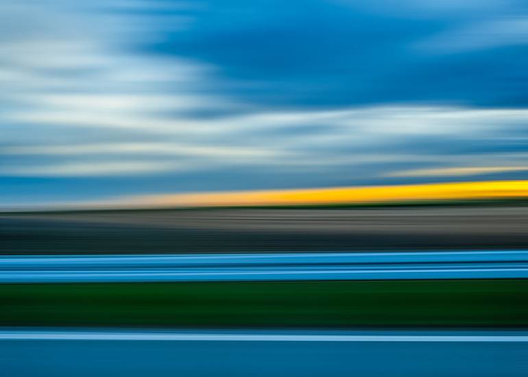 Evoke a sense of wanderlust with "traveling landscape#7," a captivating abstract photograph. This limited edition print, signed and numbered, is one of only 10 ever made, ensuring its exclusivity. A certificate of authenticity guarantees its value and uniqueness. The artwork is printed on Hahnemühl...