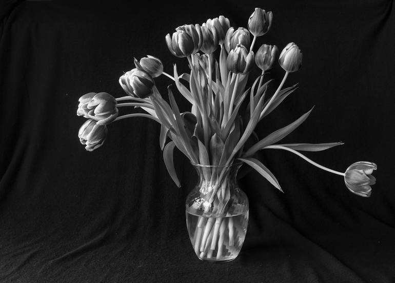 I am always looking for interesting flowers to make into a still life. Sometimes the flowers fall into interesting shapes and patterns, but many times they don't. I was lucky that these tulips performed for this photograph.