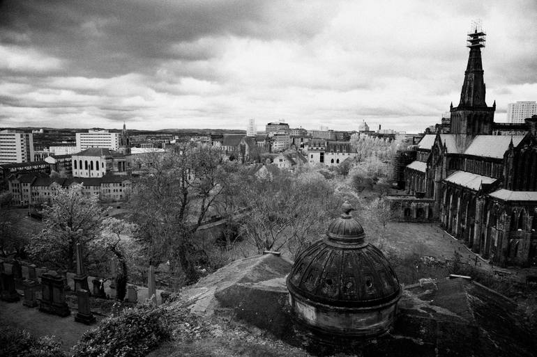view from glasgow necropolis hill over glasgow and glasgow cathedral scotland uk Photograph