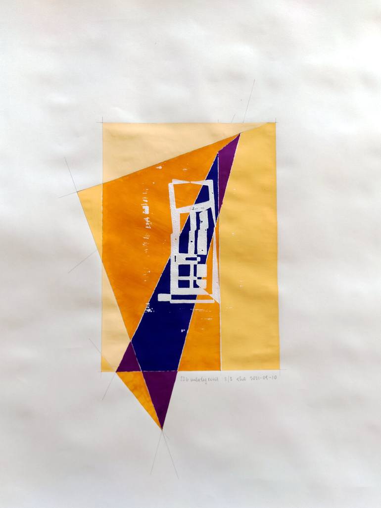 This work was created in the fall of 2021, between the first and the second covid-19 winter by now. Sometimes in that time I remembered my stay as a student architectural assistant in London in the summer and fall of 1987. The artwork turned out to be a monocoloured linocut and gouache on cardboard...