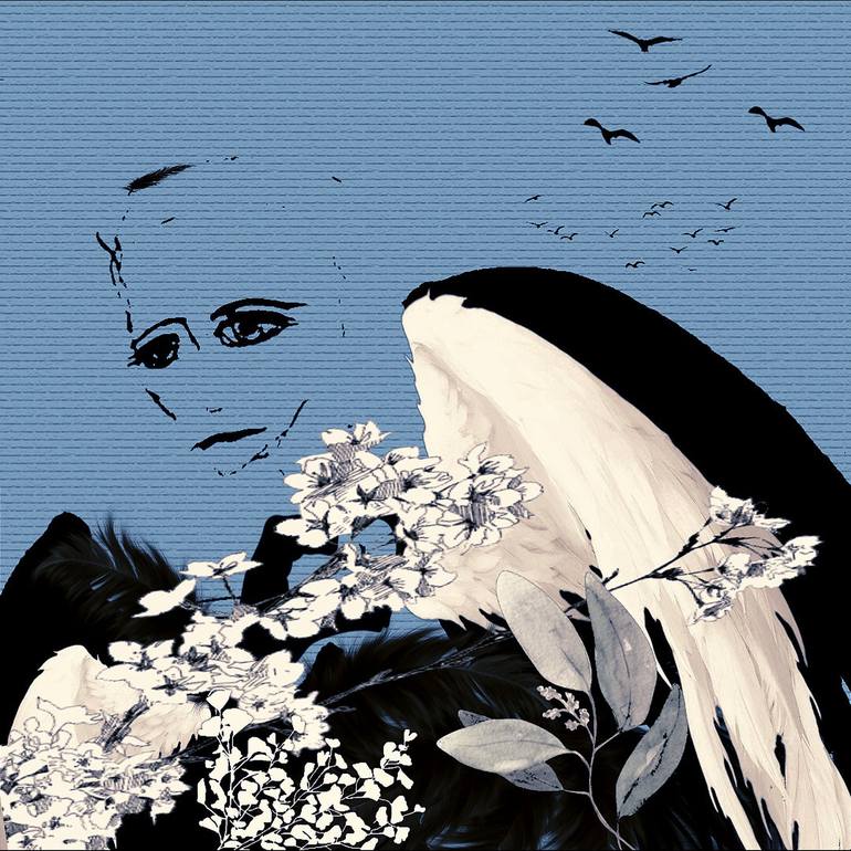This captivating art print features a delicate interplay of natural and abstract elements. The style of the original painting can be described as a blend of modern minimalism and contemporary mixed media art with minimalist line work, mixed media influence, surrealist undertones, andneo-romanthic ae...