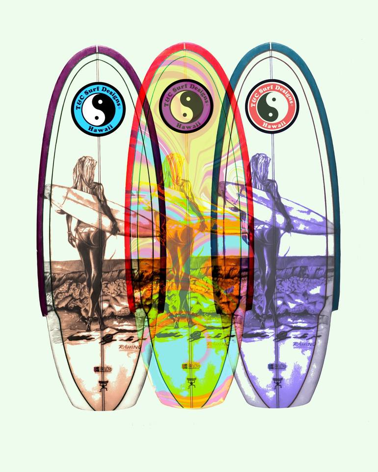 Nothing better than a beautiful woman standing on a beautiful beach looking at perfect waves. The original was painted on an actual T and C surfboard. This is a signed and numbered hand embellished artist proof. She stands out beautifully in her custom floater frame.