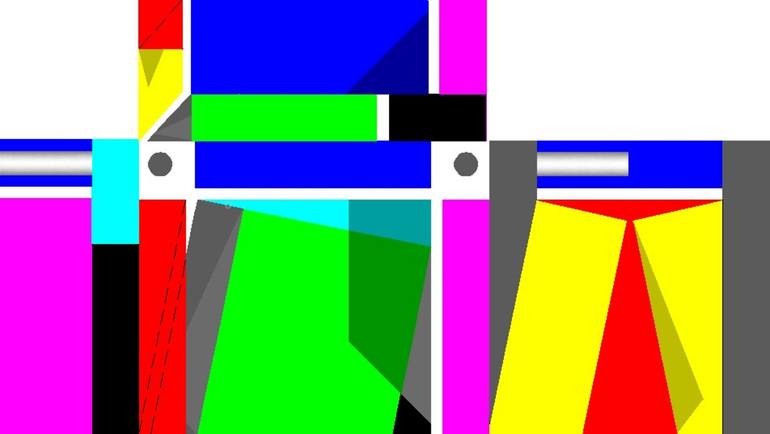 Architectural inspiration. The composition is a complex plot of figures, lines and colors derived from architectural plans, sections and views.