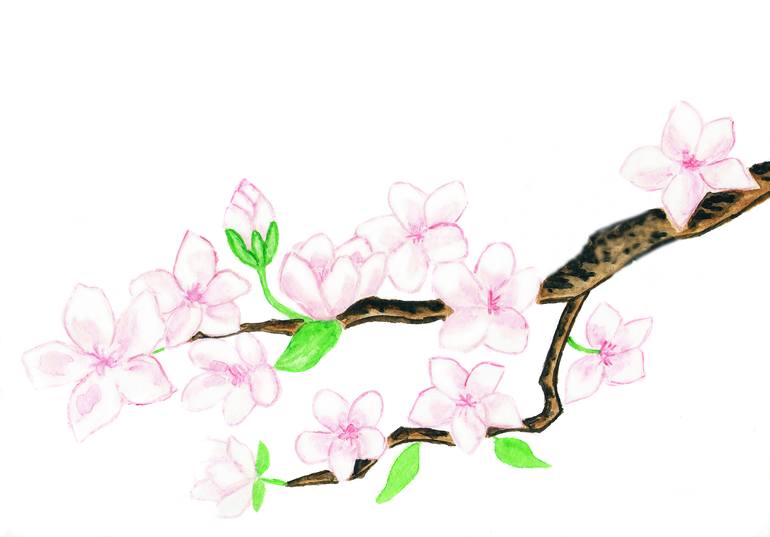 Branch with white-pink flowers on white background. This painting is offered only as prints, original of this painting is not for sale, because it was changed and additional elements added, original painting is for sale here: This is Artistic produced limited edition prints of 26. Original painti...