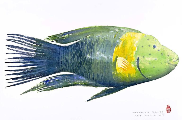 part of a series depicting the living organisms of the Great Barrier Reef, showcasing the exotic nature of the worlds largest living organism, painted in watercolour appropriate for its immediacy and transparent quality