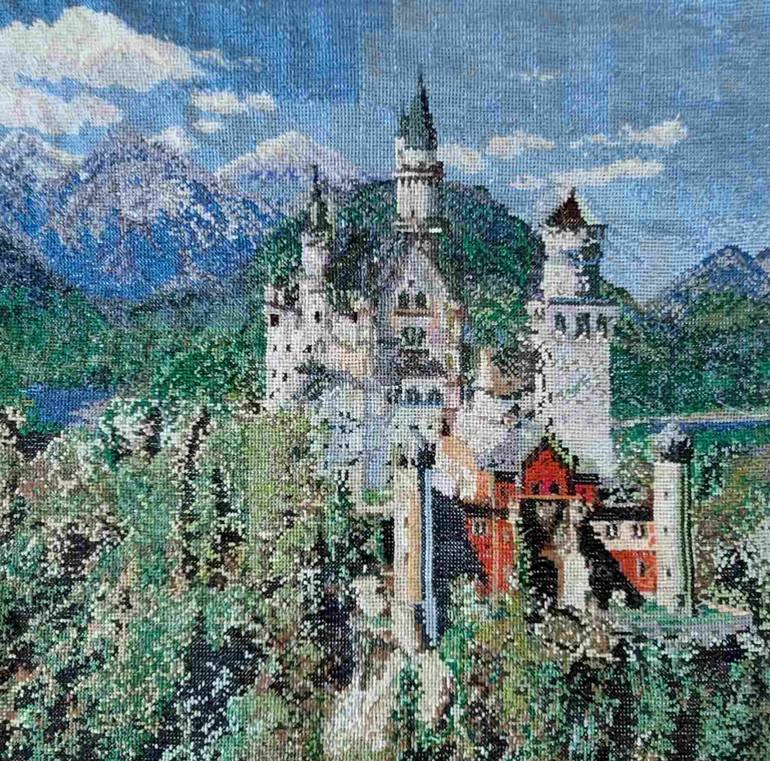 Castle cross-stitch artwork is a stunning and intricately crafted piece of art that is perfect for any lover of medieval architecture and history. The artwork features a beautifully detailed castle scene, painstakingly stitched by hand using colorful threads on a fine cloth canvas. The castle is de...