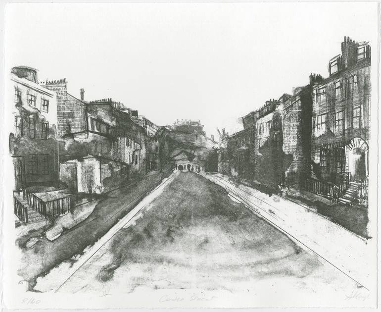 Stone Lithograph of Castle Street in Edinburgh. Printed on Takach Press by Aleksandra Kargul in Edinburgh Printmakers