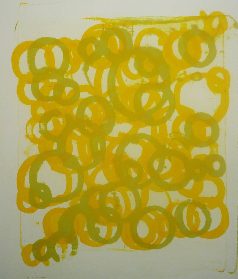 The artist was born in Nicosia, Cyprus (October 1987), where she currently lives and works. She holds a DNAP, (Diplôme National d’Arts Plastiques), from the Ecole Supérieure des Beaux-arts de Nîmes, as well as a DNAP and a DNSAP, (Diplôme National Supérieur d’Arts Plastiques), from the Ecole Nationale Supérieure des Beaux-arts de Paris, France, obtained with Distinction. Eleni Pratsi produces artworks with geometric compositions and explosive, liquescent colours. She utilises both painting and printmaking techniques, evoking a balance between creative control and affirmation of chance, which extends throughout all the works. Every composition is created from experimentation with different colour combinations and the infinite possibilities that surface through the repetition, overlap and juxtaposition of circles. The use of stencil, a meticulously cut-out original which meets the canvas, creates sometimes sealed, and other times porous boundaries for the vivid colours that are poured directly on it. The colour palette is influenced by pop culture, developments in pigments and industrial paint production, which Pratsi continually researches. The paint, whose density is specific but different every time, interacts within the in-between space of canvas and stencil in ways that are often surprising. The specifics of gravity, which carries the paint on the painterly surface, play an important part in the creation of colour drips and blocks. Having developed a special relationship to the materiality of painting and the multiplicity of printmaking, Pratsi proposes images that do not impose a fixed meaning but invite the eye to travel within otherworldly landscapes, seen as if from above. The visual and emotional connections one can make, lead to different interpretations of the works. The title of the exhibition, “La Vie en Ronde”, can be interpreted to refer to the “roundness” of life, that feeling of things being mysteriously tied to each other, turning on their own accord, flowing, mixing, and mingling on endless horizons. Evagoras Vanezis Art Theorist