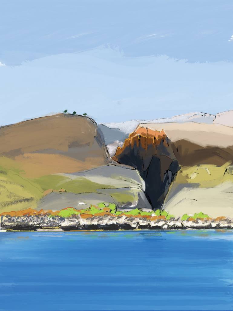 In the winter I live in the Swiss Alps and in the summer on the Mediterranean Greek island of Crete, my inspiration comes from the beauty of these beautiful different worlds. I paint every day and have integrated this in my daily activities. I draw inspiration from my everyday environment. I’m attracted by composition thru shapes, tonal values and colours. I simply like to create images I enjoy looking at and hope others may find them interesting as well, I don’t intent any other meaning with my works. My inspiration starts from the impressionists, and continues all the way with many contemporary artists. I love to combine different media such as acrylics on canvas, aquarelle, gouache, ink on paper, and fully digitally painted works on an iPad. Changing media influences how I work and I love the impact this has on my works. I share one of my daily works on my Instagram account named after a-touw-(painting)-a-day. Thank you for your interest.