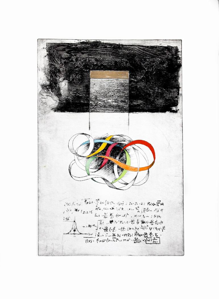 Original intaglio on handmade paper from the suite: "Quantum View" in a limited edition of 5 pieces, each signed and with the embossed seal by the artist.